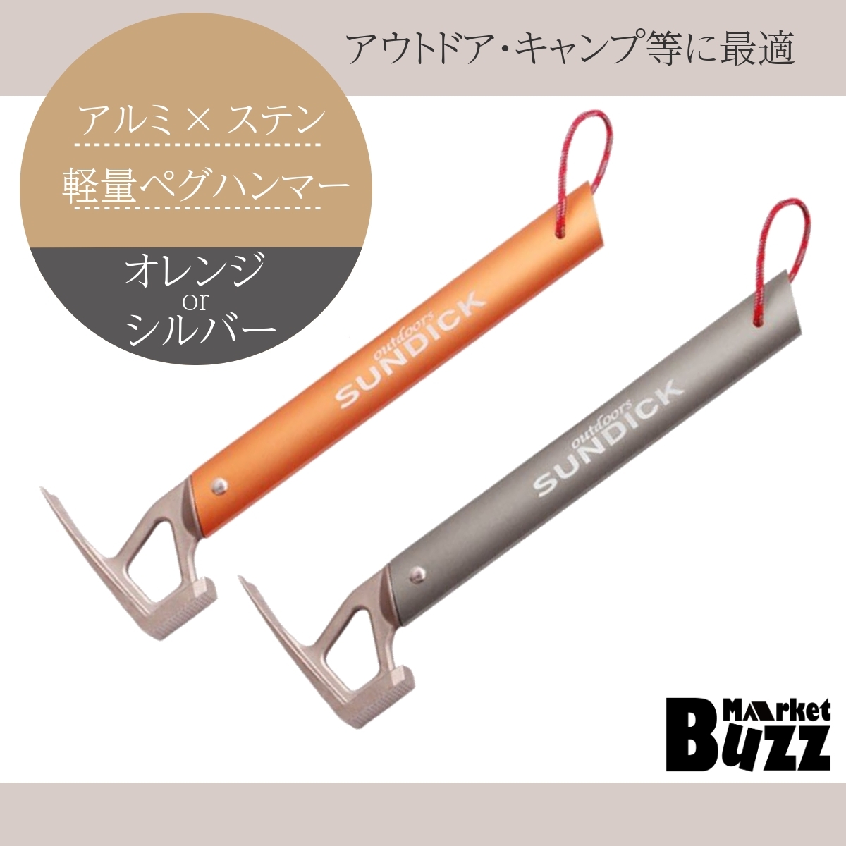 ハンドルはアルミニウム、ヘッドはステンレスと軽量かつ頑丈に設計されたアウトドアハンマーです。 ヘッドがステンレスの為バランスが良く、ペグの打ち込みに最適な仕様となっています。 ■わずか313gの軽量設計 ヘッドはステンレス、ハンドルはアルミと軽量設計ながらバランスを追求し打ち込みやすさを実現 ■栓抜き機能完備 キャンプやアウトドアで活躍の栓抜き機能で幅広く活躍してくれます ■自立タイプで使いやすさ抜群 ヘッドが平らで地面に立てて置くことができるので、もう見失うことはありません |