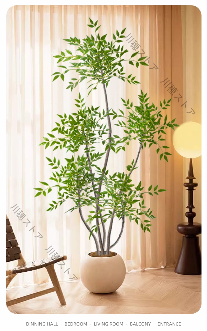 南天竹 人工植盆栽 緑装飾 室内盆栽 大型 置物 リビングルーム 軽い贅沢 植物模造景 擬木 ホテル玄関盆栽 事務所 廊下 コーナー飾り物