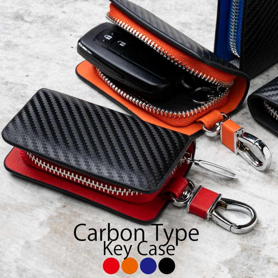 スマートキーケース カーボンレザー キーケース メンズ レディース 汎用 おしゃれ かっこいい ファスナー付き ギフト