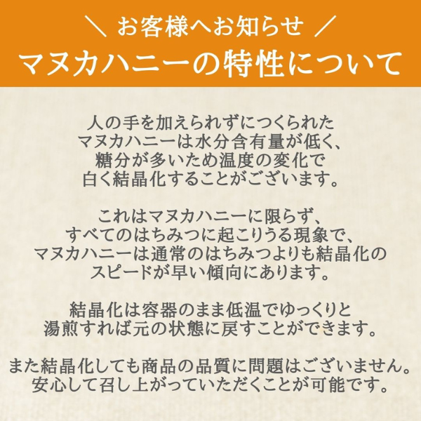 ・原材料:マヌカハニー(ニュージーランド産)