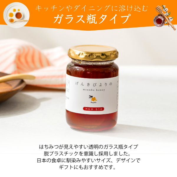 はじめましてのマヌカハニーのシリーズ商品として、より健康を意識し、毎日を元気に過ごすためにぴったりなげんきびよりのマヌカハニーを作りました。