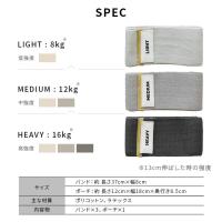 ・強度の異なる3種類のバンド(HEAVY:16kg、MEDIUM:12kg、LIGHT:8kg)。