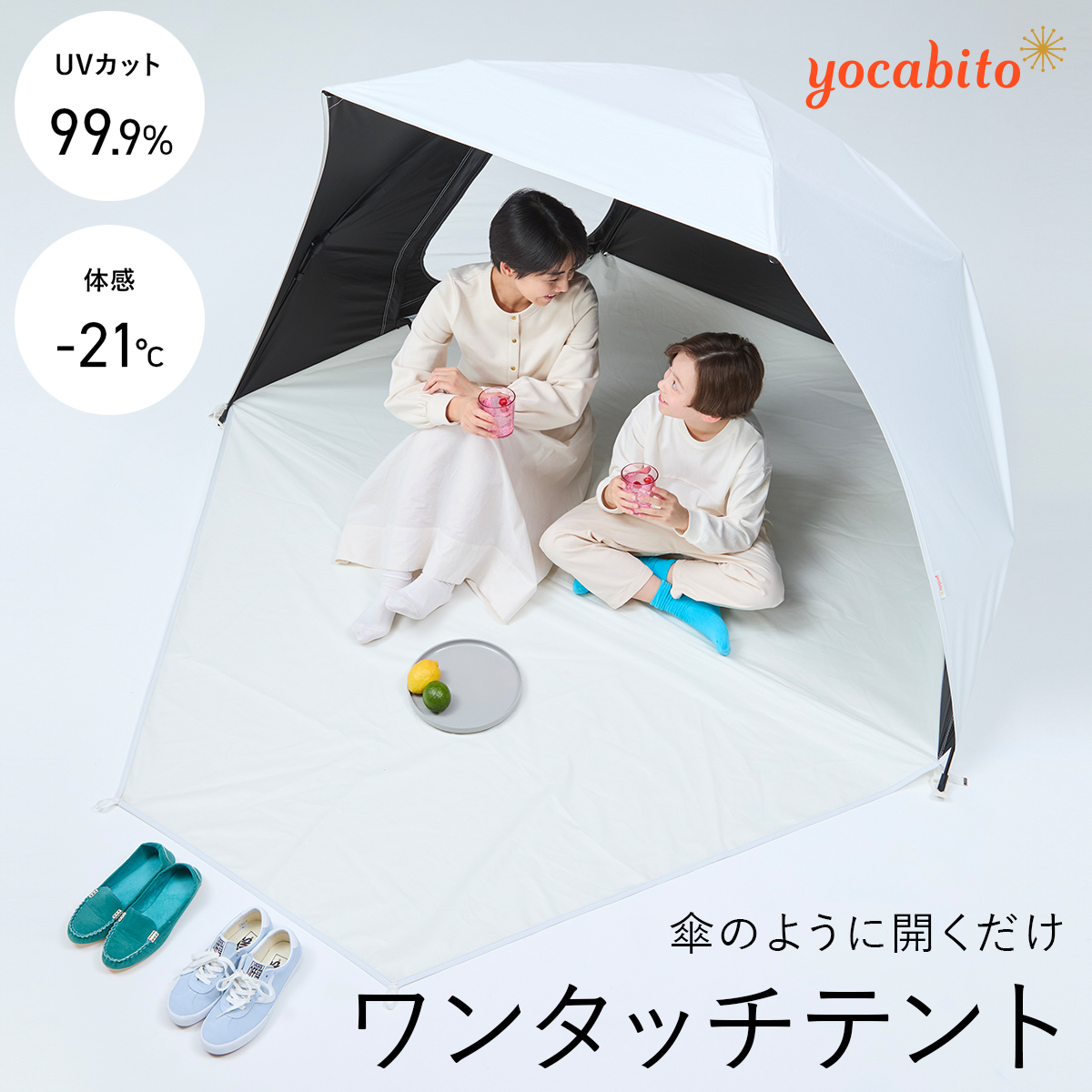 ヨカビト yocabito COCOON コクーン サンシェード ワンタッチ アンブレラ型 UVカット ブラックコーティング 日よけ 撥水 折りたたみ ホワイト スタイリッシュ 初心者向け 収納ケース付き