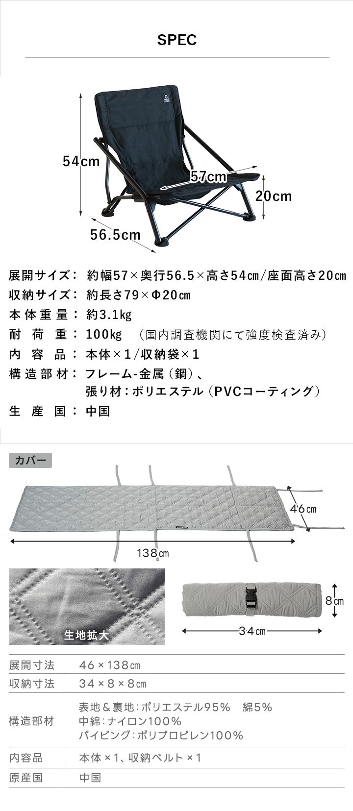 | 展開寸法 | 幅57×奥行56.5×高さ54cm/座面高さ:20cm |