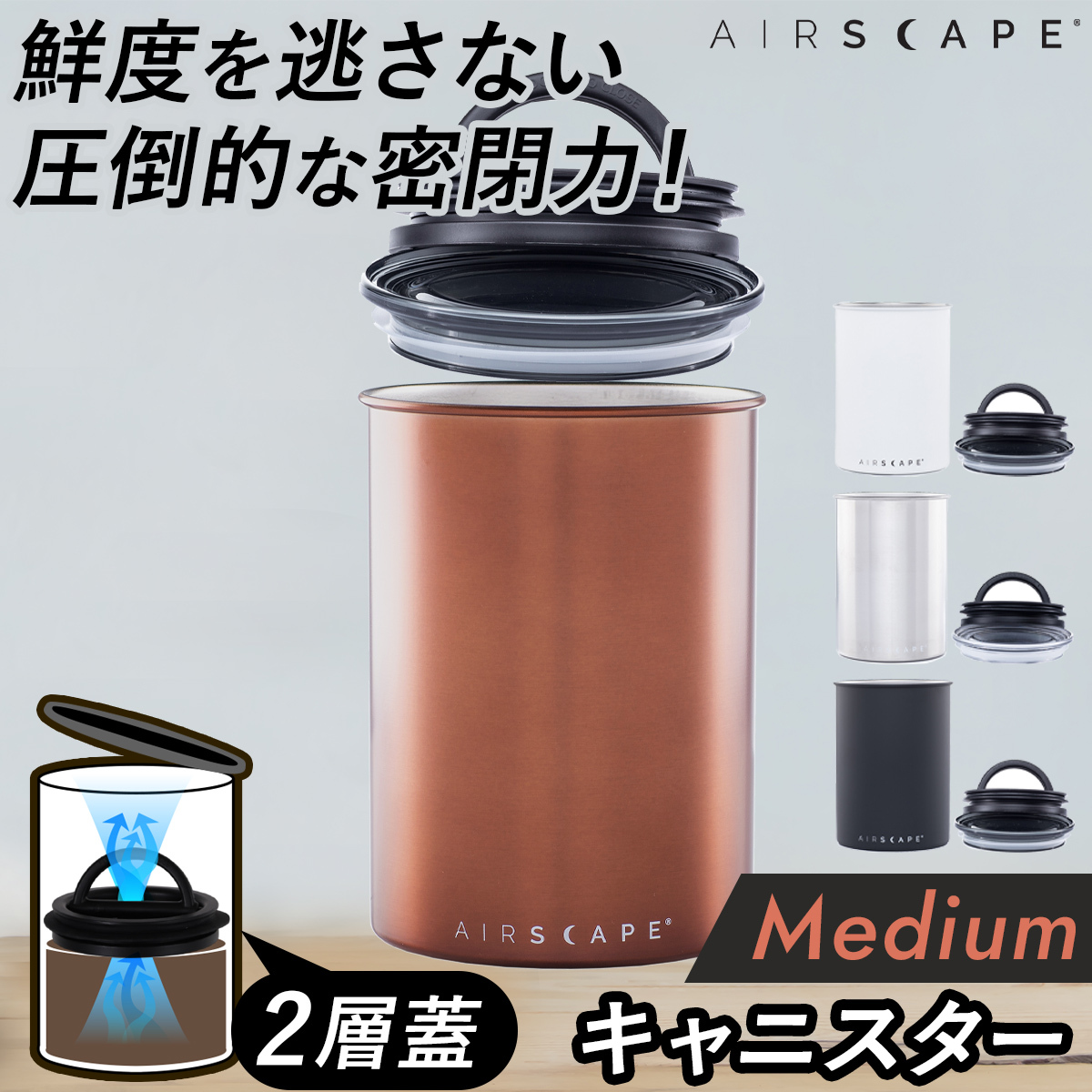 このため、拘りの深いコーヒー愛好家からライトなコーヒーユーザー、全てのコーヒー愛好家の為にコーヒー保存キャニスターのAirscape(R)ラインを開発。