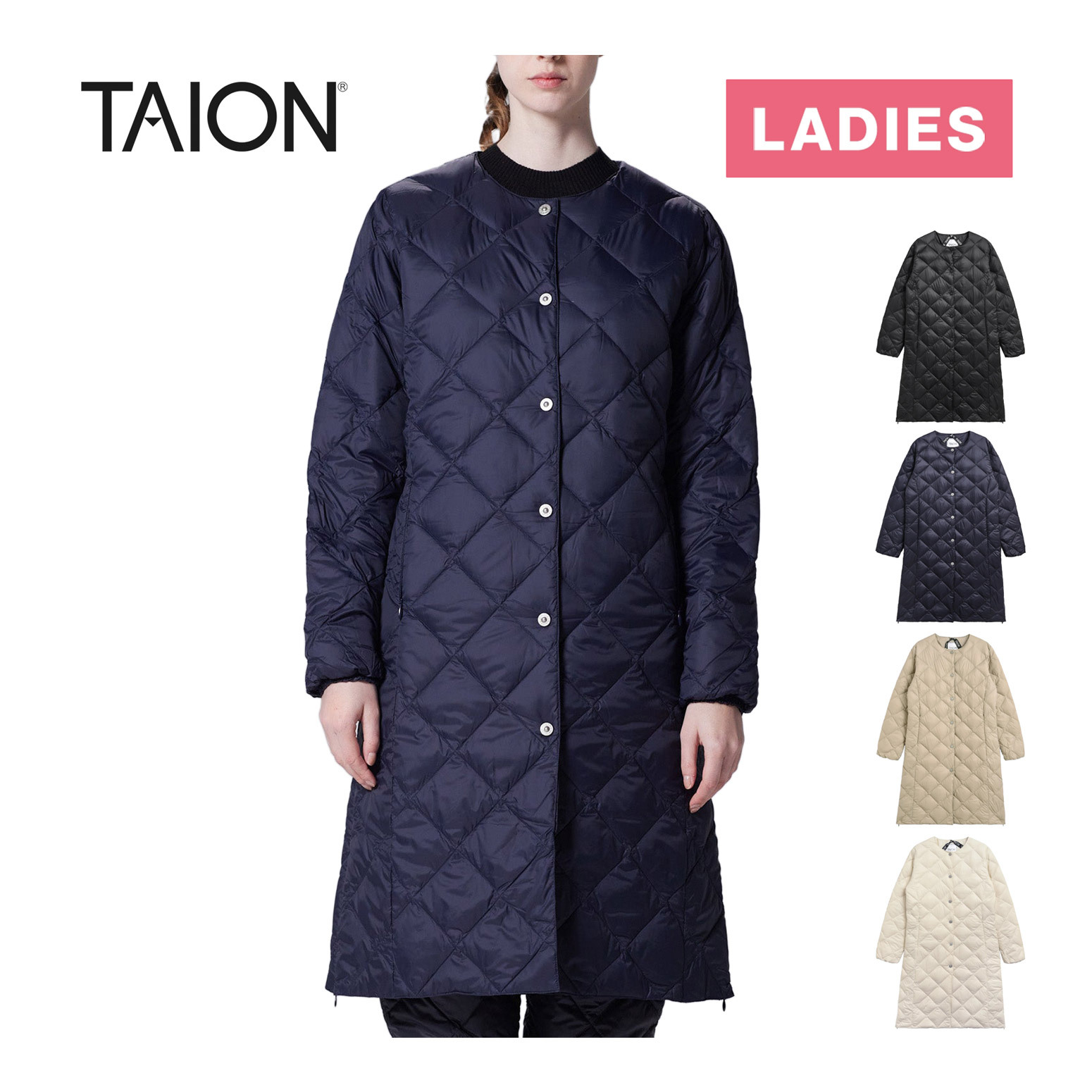 ダイヤキルトが上品な印象、レイヤードも楽しめるロング丈のクルーネックダウンジャケット。