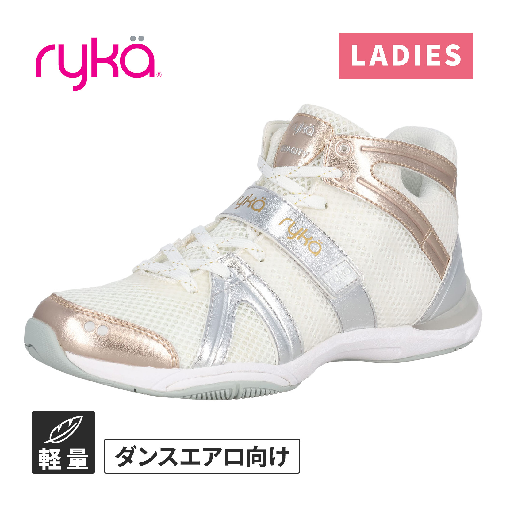 ライカ ryka テナシティー E1270M4100 F ホワイト/シルバー/ゴールド レディース 2026モデル フィットネス ダンス スタジオ エクササイズ シューズ ズンバ