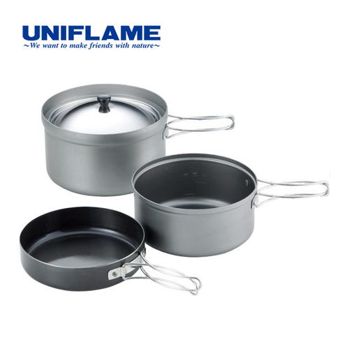 | 材質 | ライスクッカー・アルミクッカー:アルミニウム・アルマイト加工 フライパン:黒皮鉄板・クリアラッカー焼付塗装 兼用フタ・ハンドル:ステンレス鋼 ツマミ:フェノール樹脂 |