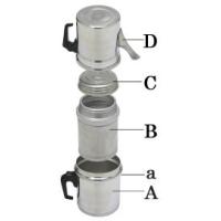 *これらとは別に、コーヒーが出来上がった後、サーバーに載せるふたが付属されています。このふたは、上の商品写真のように、収納時にはボイラー(A)の底にはまるようになっています。