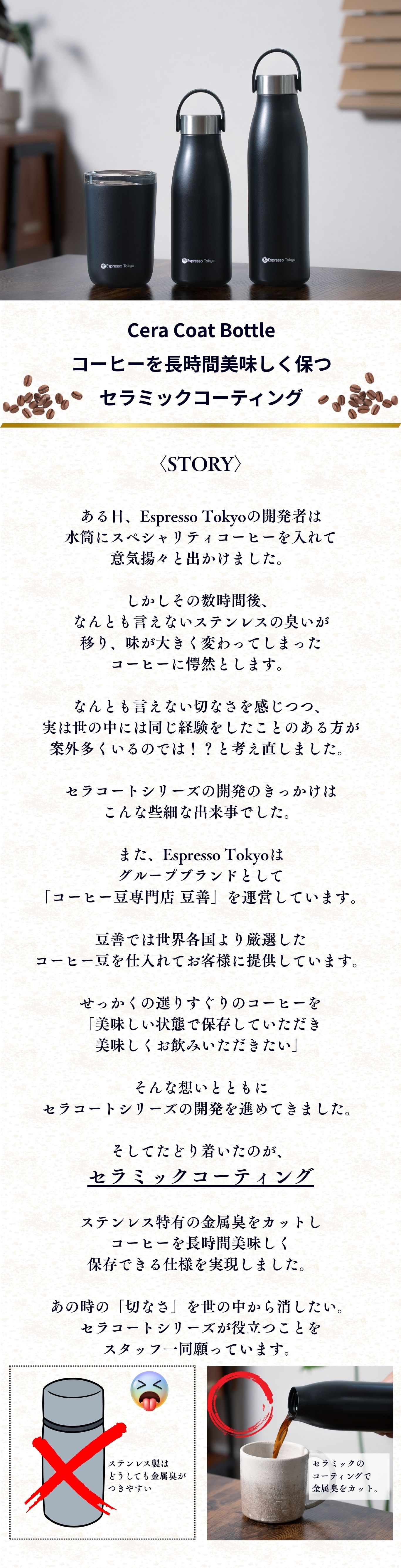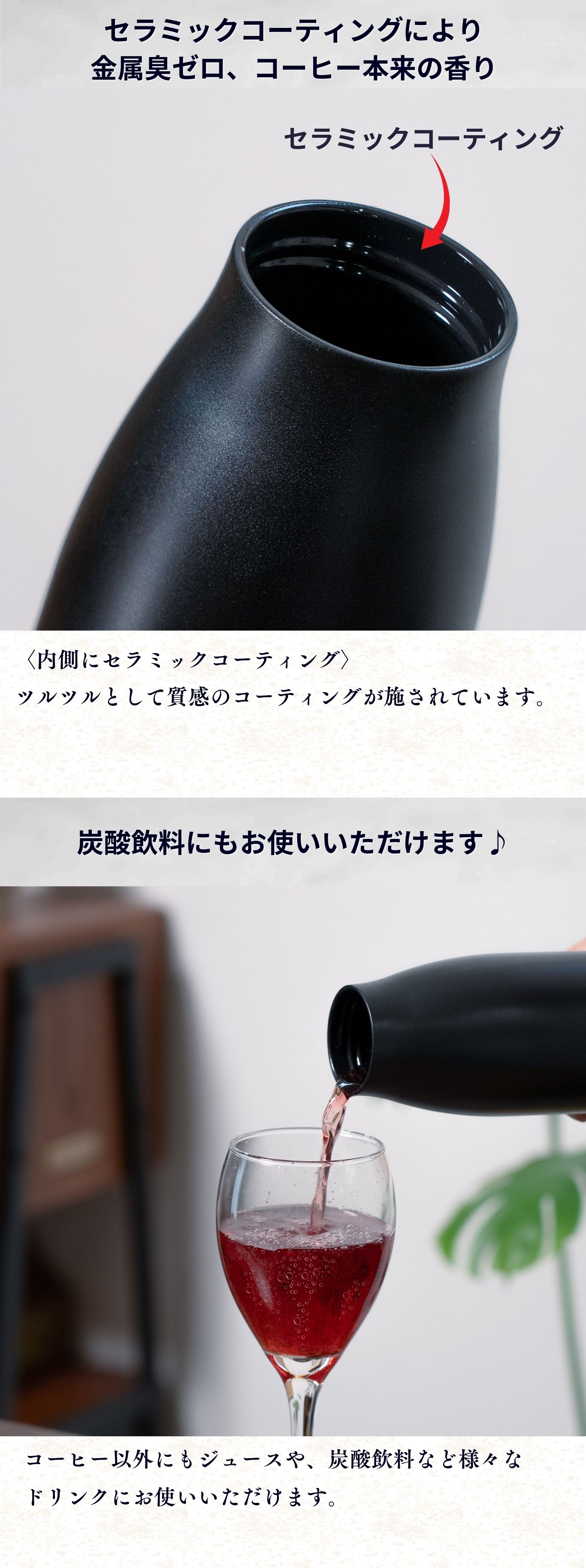 セラミックコーティングによりコーヒーを長時間美味しくキープする特殊ボトルです。