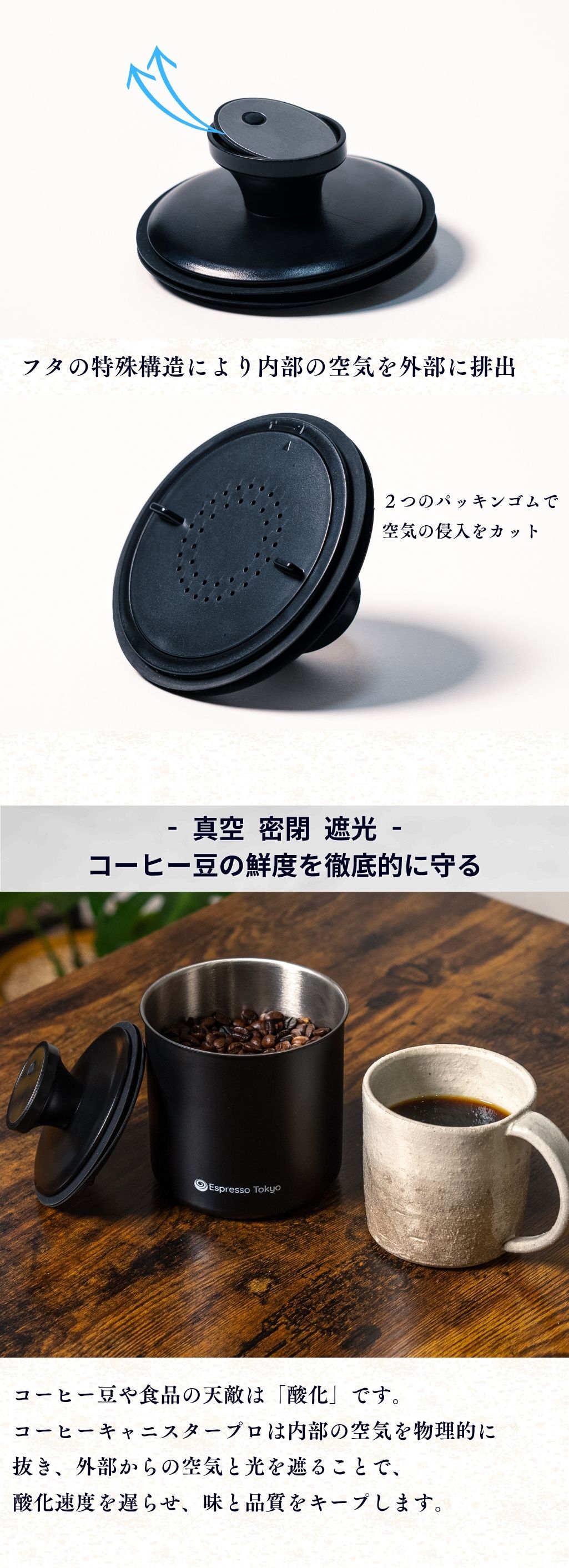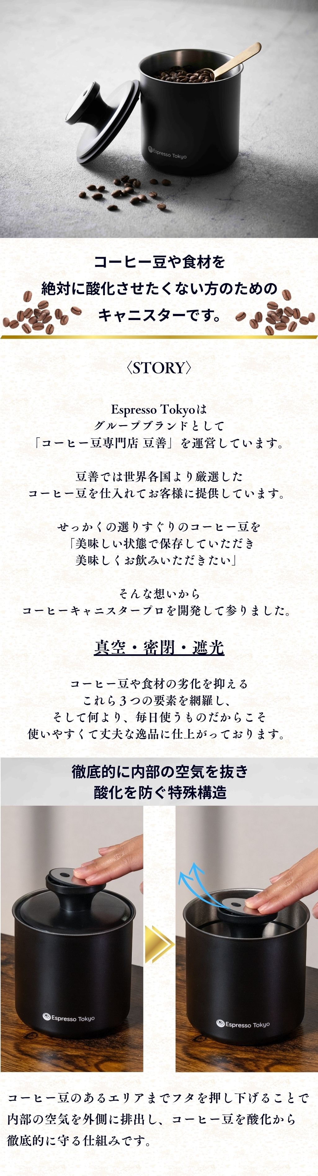 コーヒーキャニスター プロ 真空保存容器 真空 密閉 遮光 酸化から徹底的に守る コーヒー豆 保存容器 ステンレス製 選べる2サイズ Espresso Tokyo