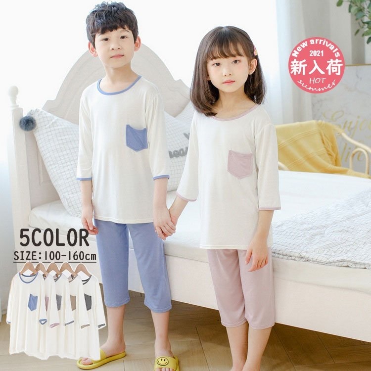 子供パジャマ 七分袖 春夏 キッズパジャマ 男女兼用 ルームウェア こどもパジャマ 5色 薄手 部屋着 寝巻き 100cm - 160cm