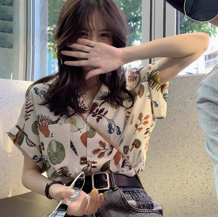 トップス レディース アロハシャツ 半袖 プリント 前開き 羽織 フェミニン 可愛い ブラウス 春夏