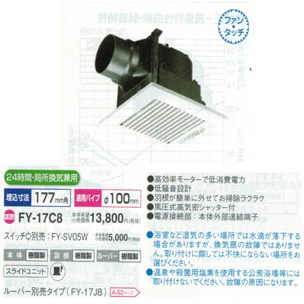 ●品名:「FY-17C8」 天井埋込形換気扇 ルーバーセットタイプ (FY-17C7後継品)
