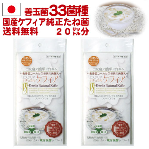 | 完全日本製のケフィア種菌( たね菌 ) 20包(牛乳10リットル分×2個)入りです。 ・ JANコード:4560210474108 ・ エステリア ナチュラル ケフィア 20包 ・ |
