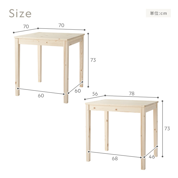 ダイニングテーブル幅78cm:幅78×奥行56×高さ73cm