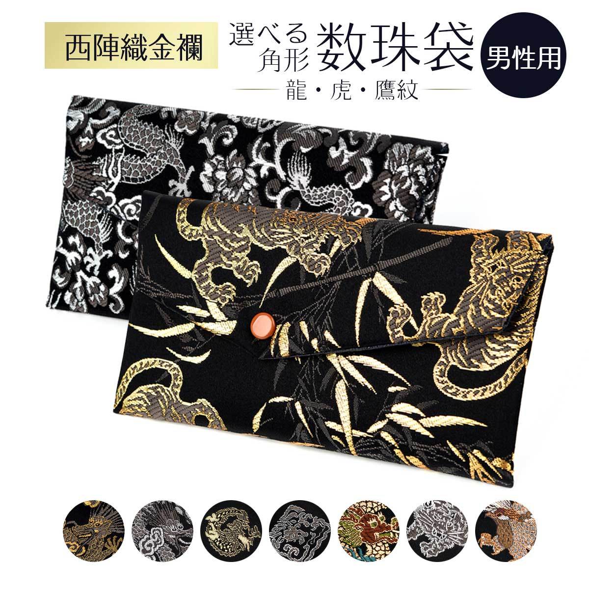 【商品名】数珠入れ 数珠袋 西陣織 金襴 選べる 男性用 念珠袋 念珠入れ 西陣 日本製 京都 juzuire 母の日 0507 金龍 銀龍 丸金龍 角銀龍 雲龍 金虎 銀虎 鷹松