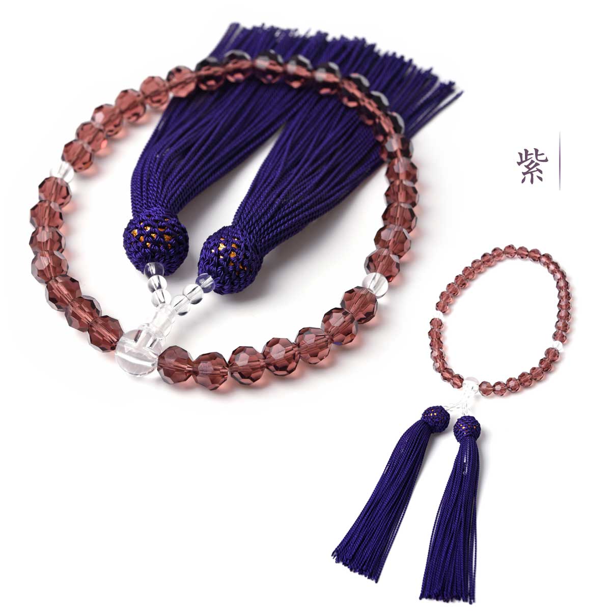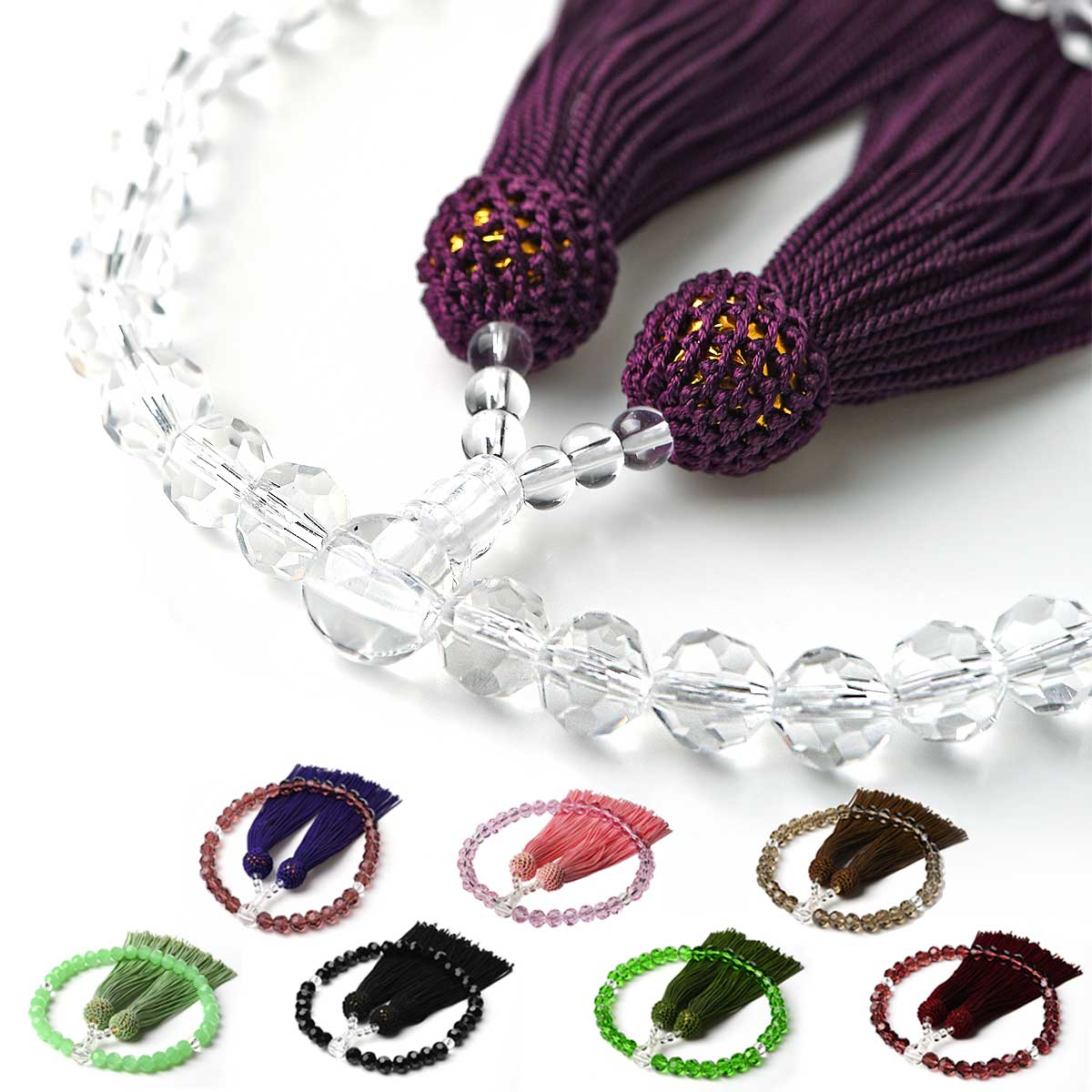 数珠 女性 女性用 多種類選 8mm ミラーカット 商品ポーチ付 念珠