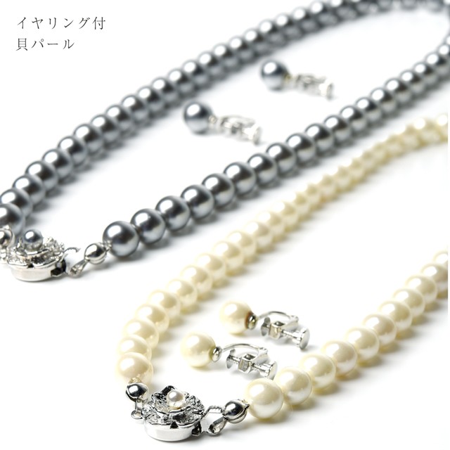 パールネックレス ネックレス 貝パール 選べる 2点セット 8mm イヤリング 付 本貝パール 慶弔両用