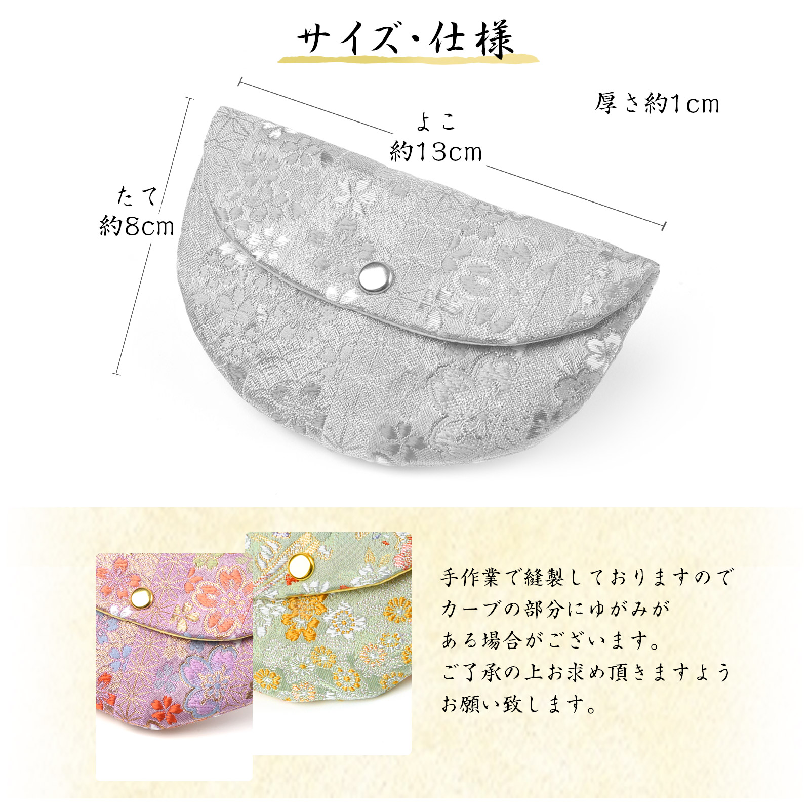・手作りのため、サイズに多少の差異やカーブにゆがみが生じる場合がございます。また生地の裁断の都合上、柄の出方が画像と異なる場合がございます。