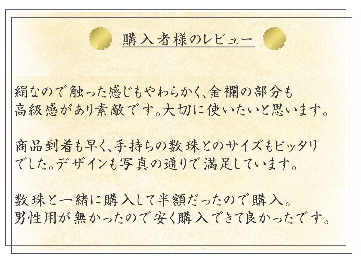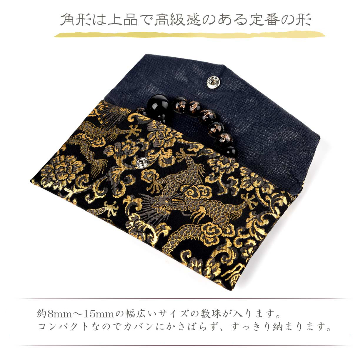 ・ 江戸時代より引き継がれてきた、京都の伝統工芸西陣織高級金襴を使用し、一流の京職人による手作りの高級数珠入れ。