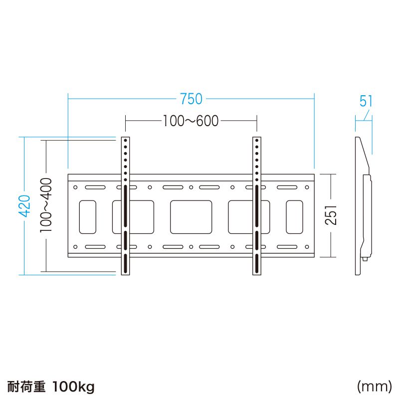 液晶テレビ・ディスプレイを壁に設置できる壁掛けテレビ金具。汎用タイプで86型まで対応。壁面固定式で耐荷重100kgまで対応。