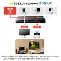 ※ポート切替時に映像が表示されるまでの時間は通常3秒〜5秒程度かかります。これは本製品による症状ではなくHDMI機器(レコーダーなど)がディスプレイを認識し映像出力を開始するまでにかかる時間であり、HDMI機器の性能によるものです。本製品自体は切替ボタンを押した瞬間にポート切替えを完了しています。