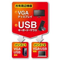 ●1組のUSBキーボード・USBマウス・ディスプレイで2台のパソコンを切り替えて使用できます。