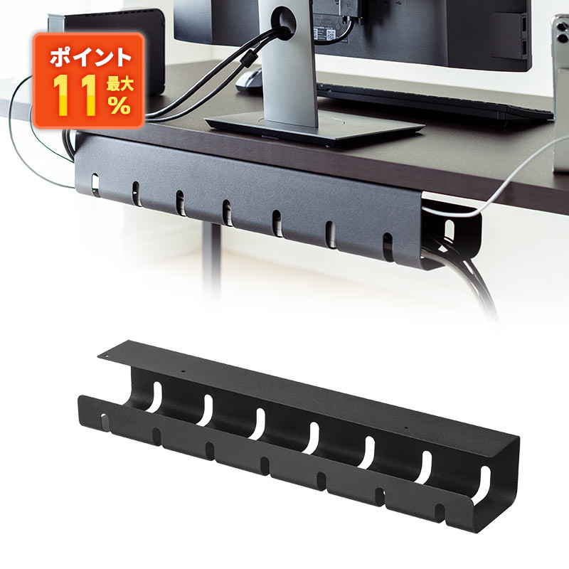 在庫限り ケーブルトレー ケーブルオーガナイザ 配線 収納 隠し デスク 電源タップ 幅53cm ブラック EEX-CBH05BK