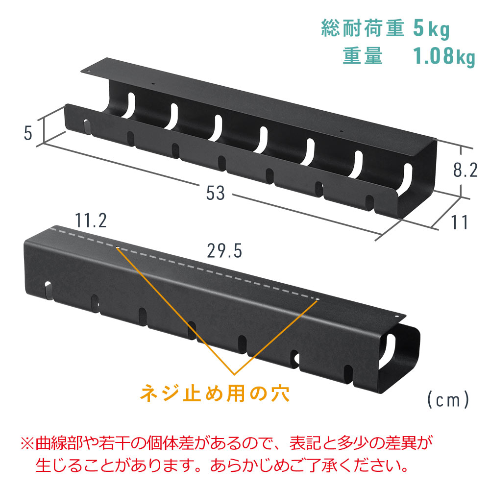 ケーブルトレー ケーブルオーガナイザ 配線 収納 隠し デスク 電源タップ 幅53cm ブラック