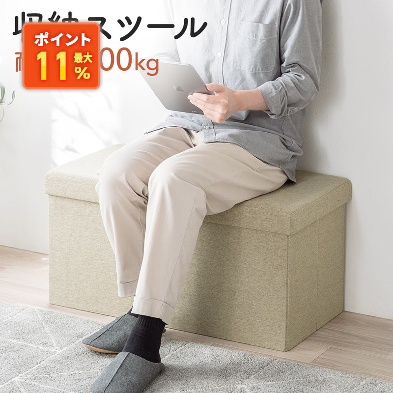 ●座る(スツール)・収納する・足を置く(オットマン)の3通りに使える収納スツールです。