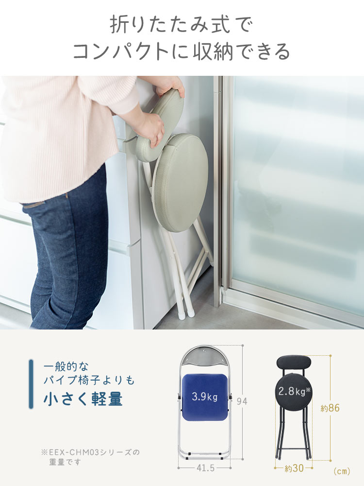 ●一般的なパイプ椅子よりも、さらにコンパクトになっています。