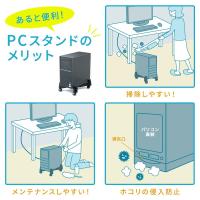 幅70〜250mmのサイズのデスクトップパソコンに対応したPCスタンドです。CPUのメンテナンスや掃除の時に楽に移動ができるキャスター付きです。床面から浮かせて設置できるのでホコリ防止に最適です。