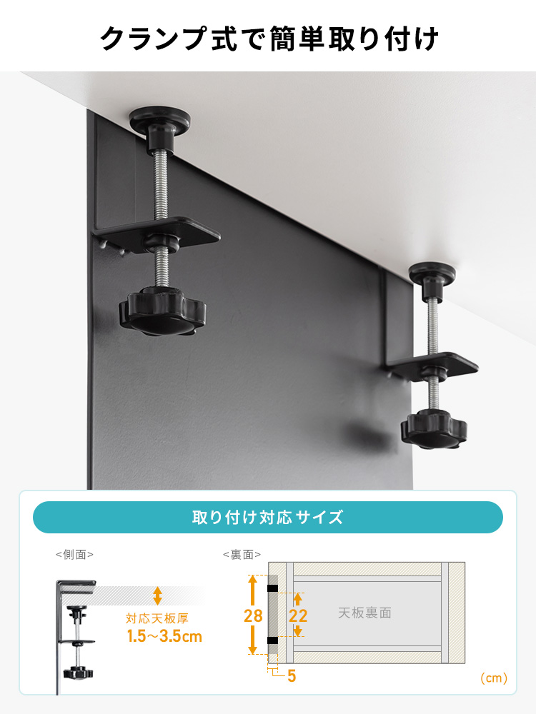 ●クランプ式なのでデスクを傷つけず、取り付けが簡単です。