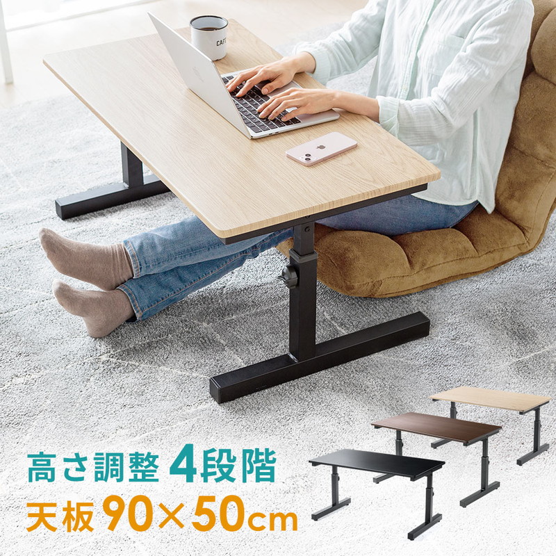 ●木製(MDF)の天板に、黒フレームの落ち着いた色味のローデスクです。