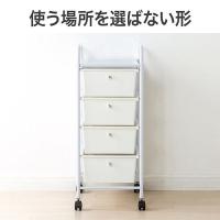 掃除や移動に便利なキャスター付きの4段の引き出しワゴンです。A4書類がぴったり入り、深さのあるプラスチック製の収納ケースで収納力も抜群です。あらゆるシーンで使いやすいホワイトカラー。