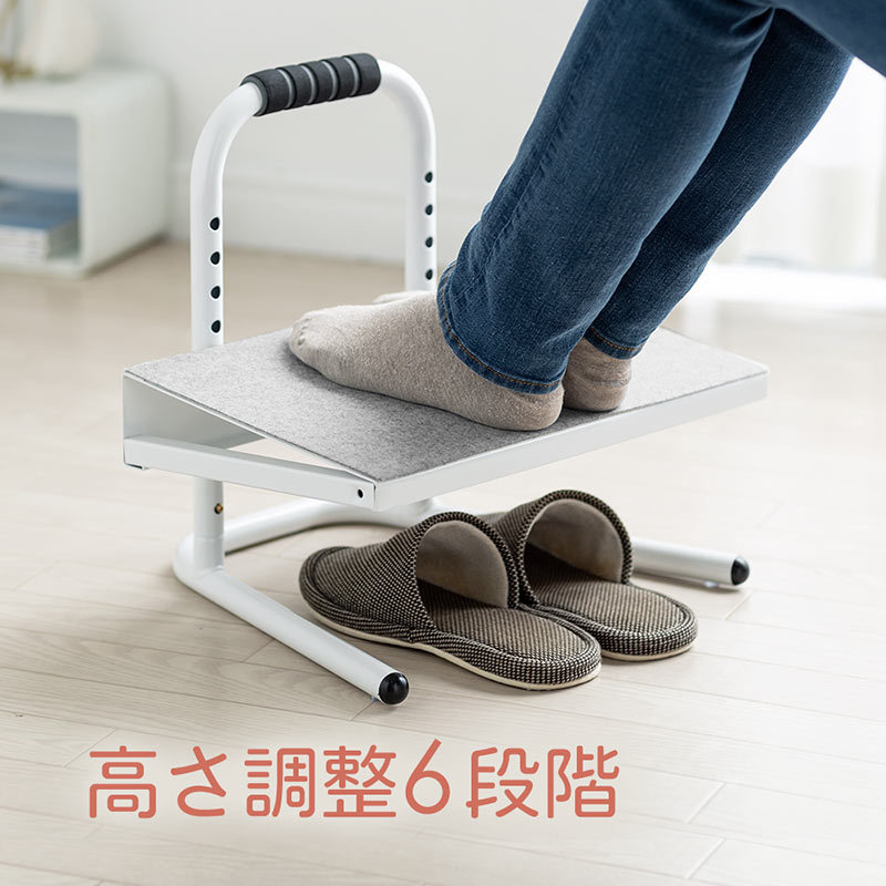 自分の体格に合わせて、高さを変更できるフットレストです。オフィスにもテレワークにもおすすめ。脱いだ靴やスリッパは、フットレスト下に収納できます。
