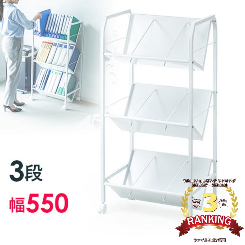 ファイルワゴン 3段 A4 キャスター付 PCワゴン 本 書類 収納 仕切り スチール製 斜め天板 EEX-FWG01 PCラック