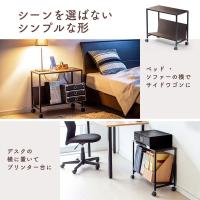 背表紙が見やすく、A4ファイルなどが取りやすい斜め棚でデスク下のスペースを有効活用できるファイルワゴンです。落ち着いた色合いの木目調の天板とアイアンフレームの組み合わせがおしゃれです。天板にはプリンターや小物を置いておけます。