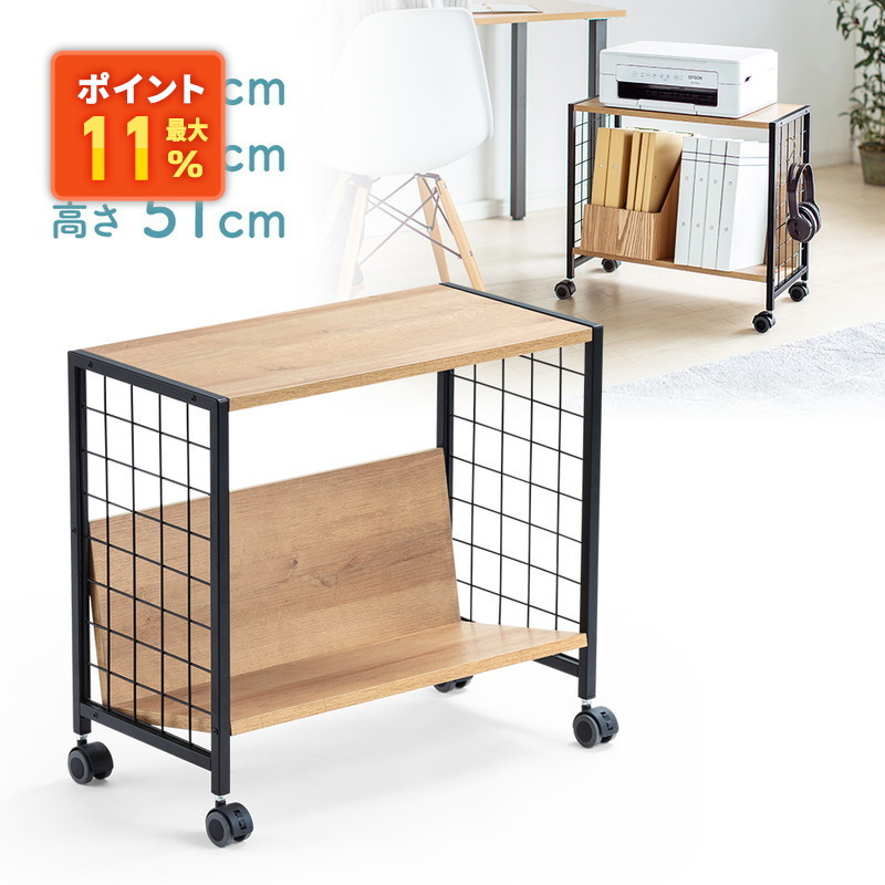 ファイルワゴン 天板付き 斜め棚 1段 木目調 アイアン メッシュ キャスター A4 ファイル PCワゴン デスク下 プリンター ナチュラル EEX-FWG03STI PCラック