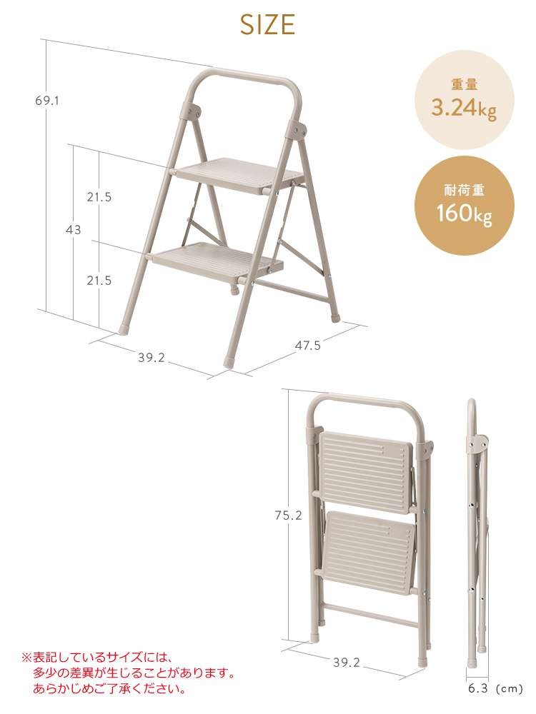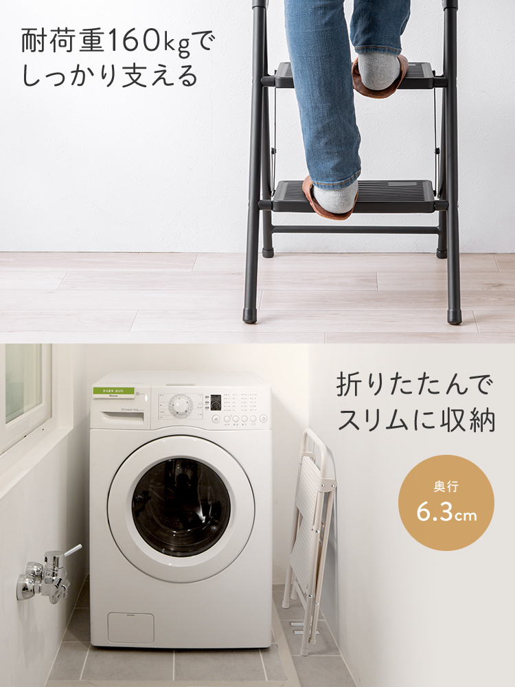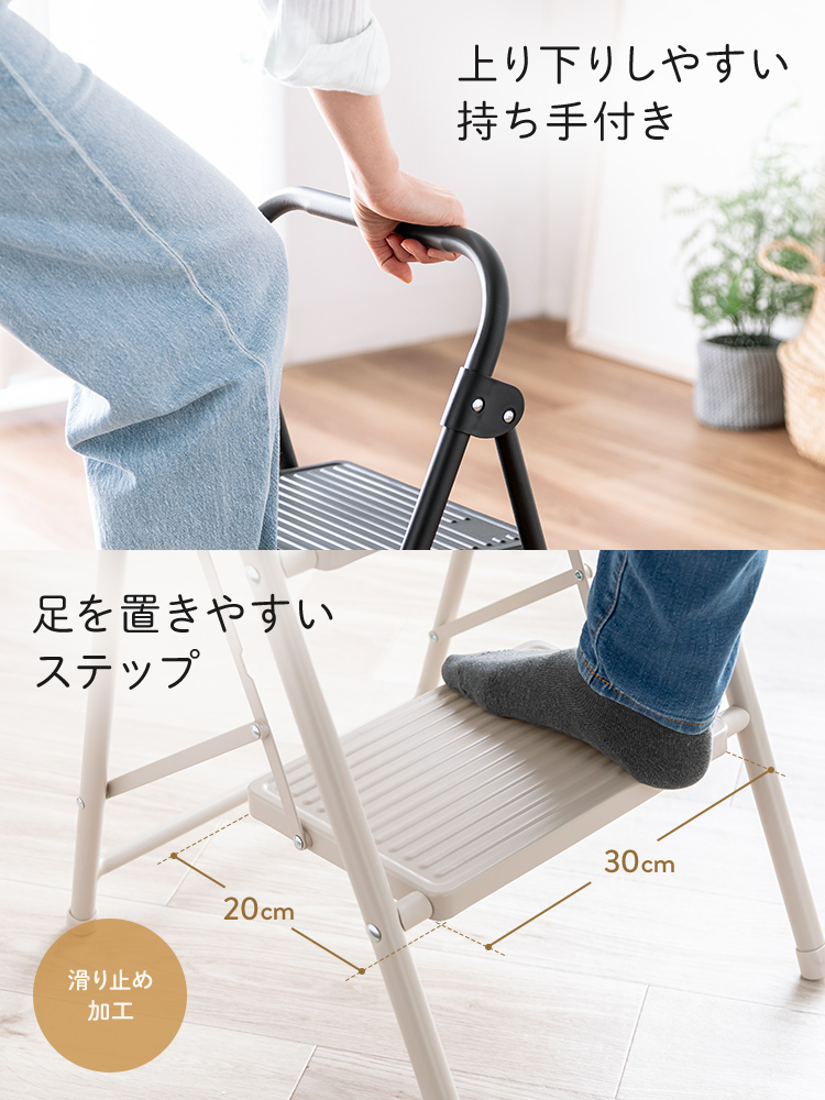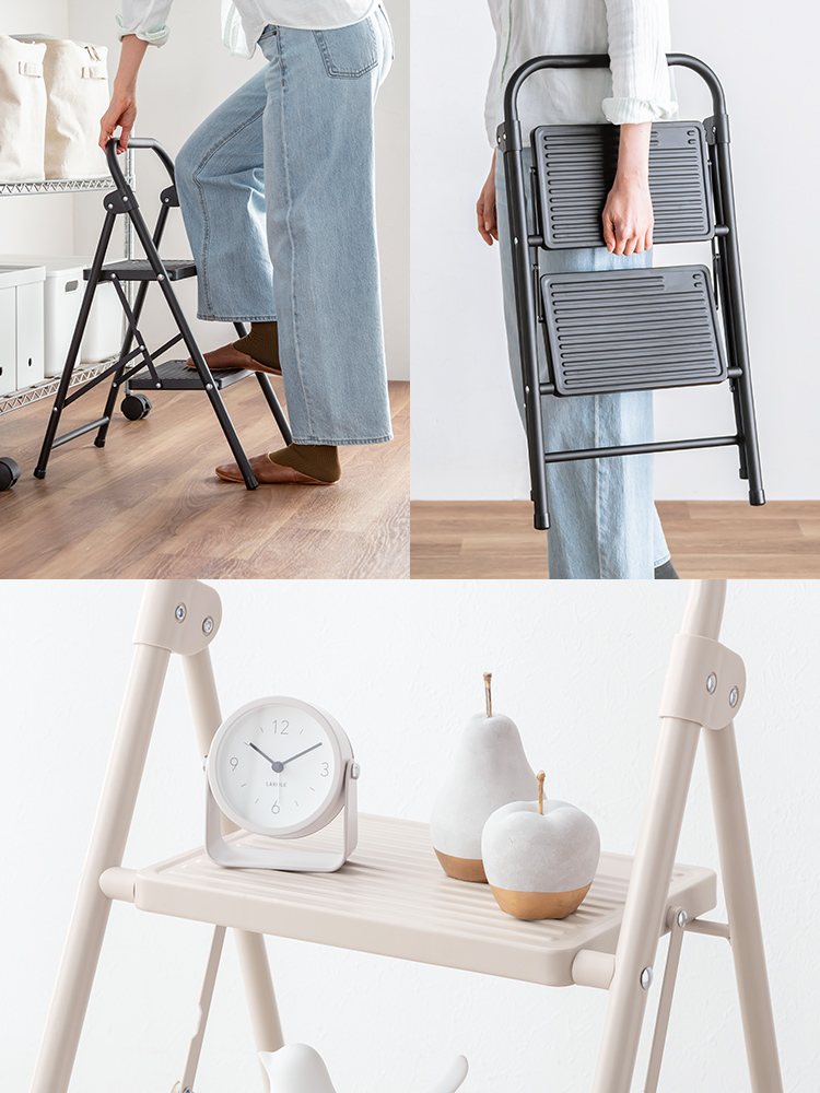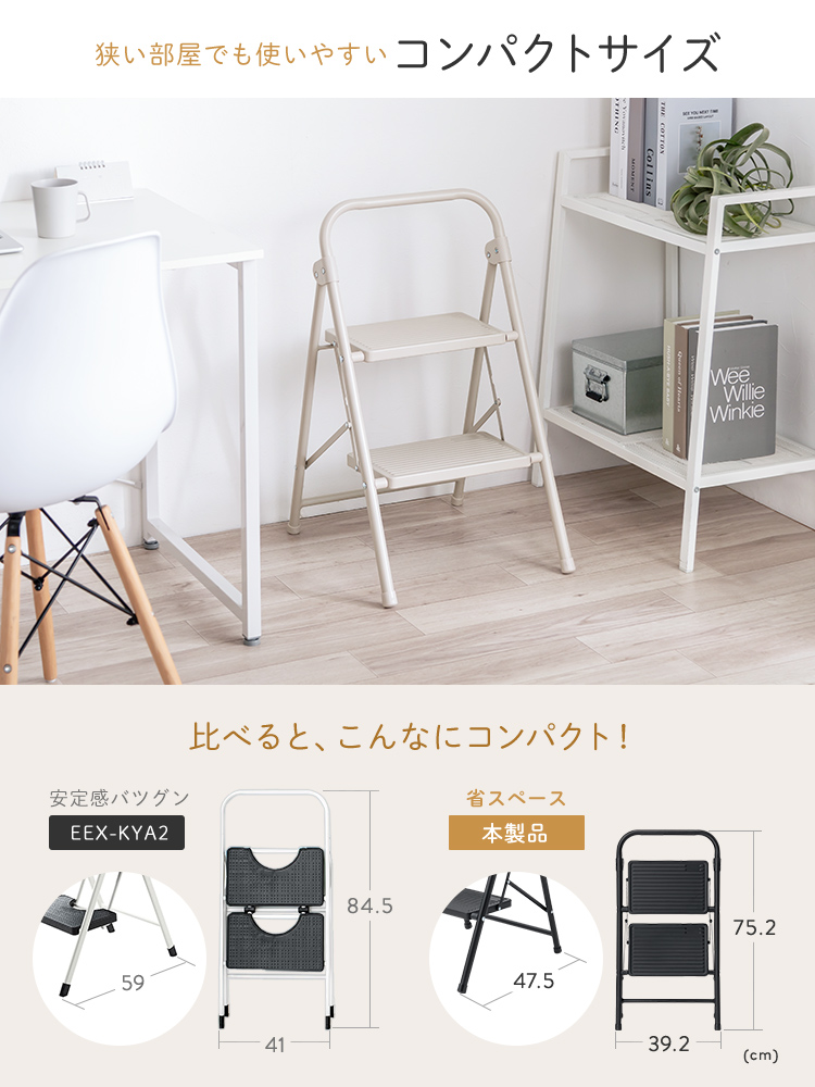 ●狭いお部屋でも使いやすいコンパクトな2段踏み台です。