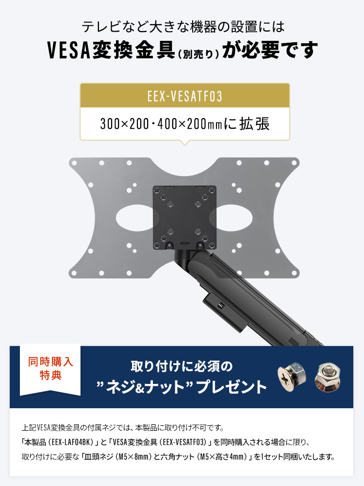 ■VESA:75×75、100×100、200×100、200×200(mm)