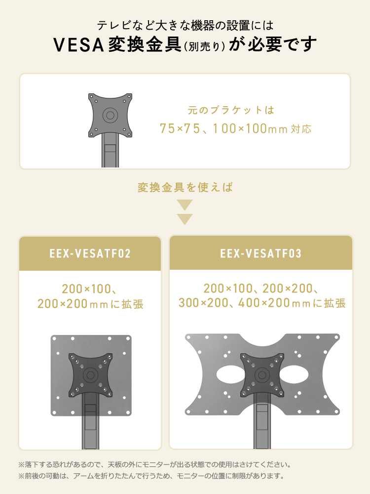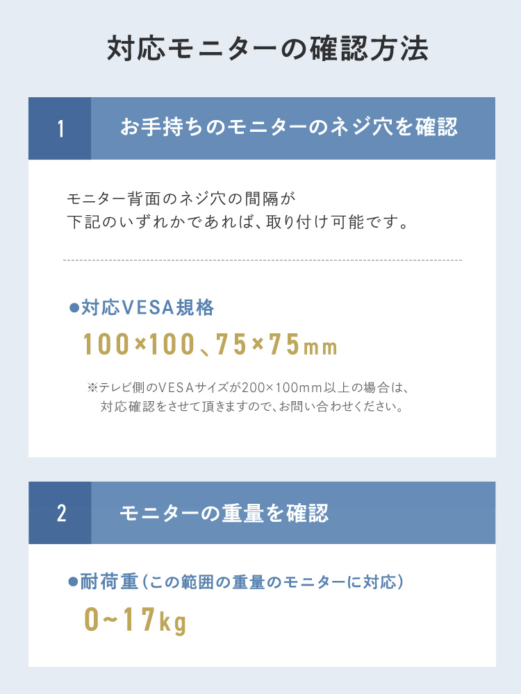 ※湾曲モニターはその構造上、平面モニターに比べモニターアームに負荷がかかりやすいため、