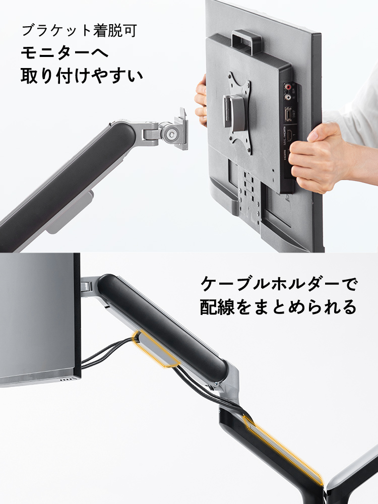 ●耐荷重0?17kgで幅広い種類の機器に対応したモニターアームです。