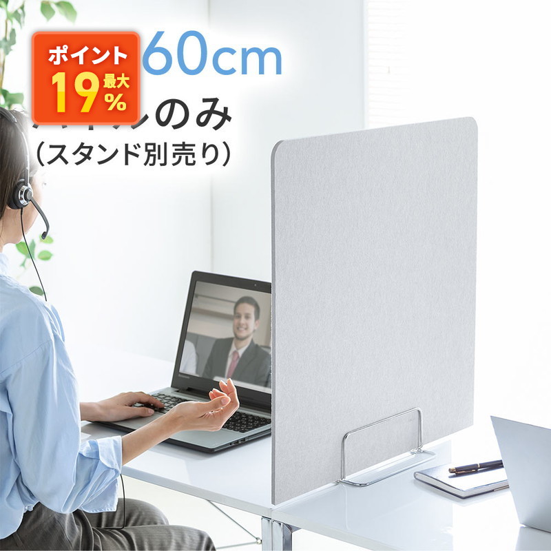 デスクに設置して使えるパーティションです。パーティション前方からの飛沫を防止し、プライバシーの保護にも最適。デスクのサイドに設置しやすい横幅60cmタイプ。グレーカラー。