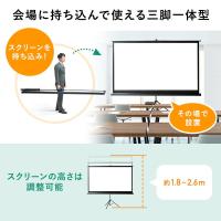 ●三脚一体型のスクリーンで、設置や移動、持ち運びが簡単です。