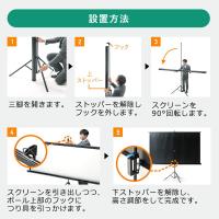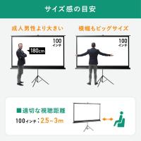 100インチワイド(16:9)で高画質・ハイビジョン対応のプロジェクタースクリーンです。簡単設置の自立式で折りたたんで持ち運べます。