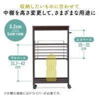 ●可動式の棚板で収納品に合わせて棚板の設置高さを3.2cm間隔で上下に調整することができます。