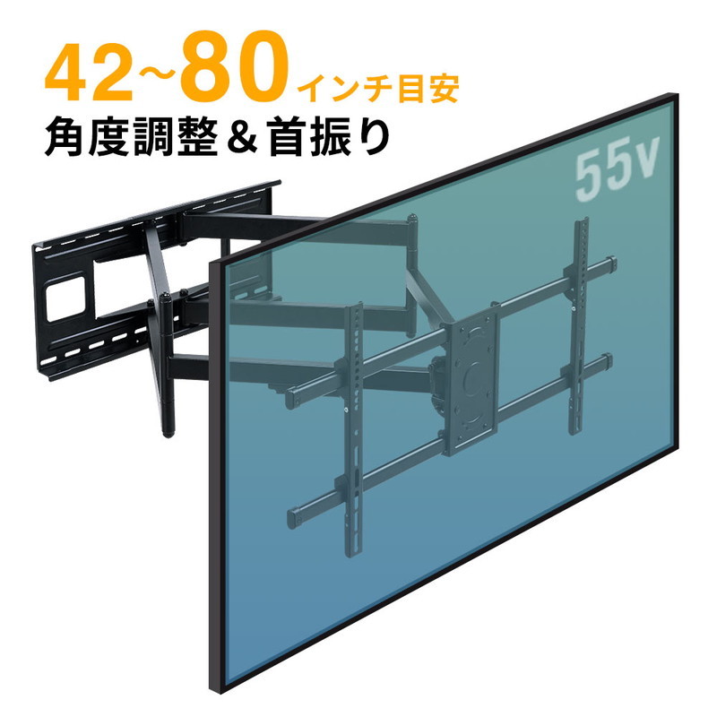 壁掛けテレビ金具 テレビ壁掛け金具 ダブルアーム TV 壁面取付 薄型 75インチ ディスプレイ 角度調整 左右首振り 可動 40〜85インチ目安 EEX-TVKA022