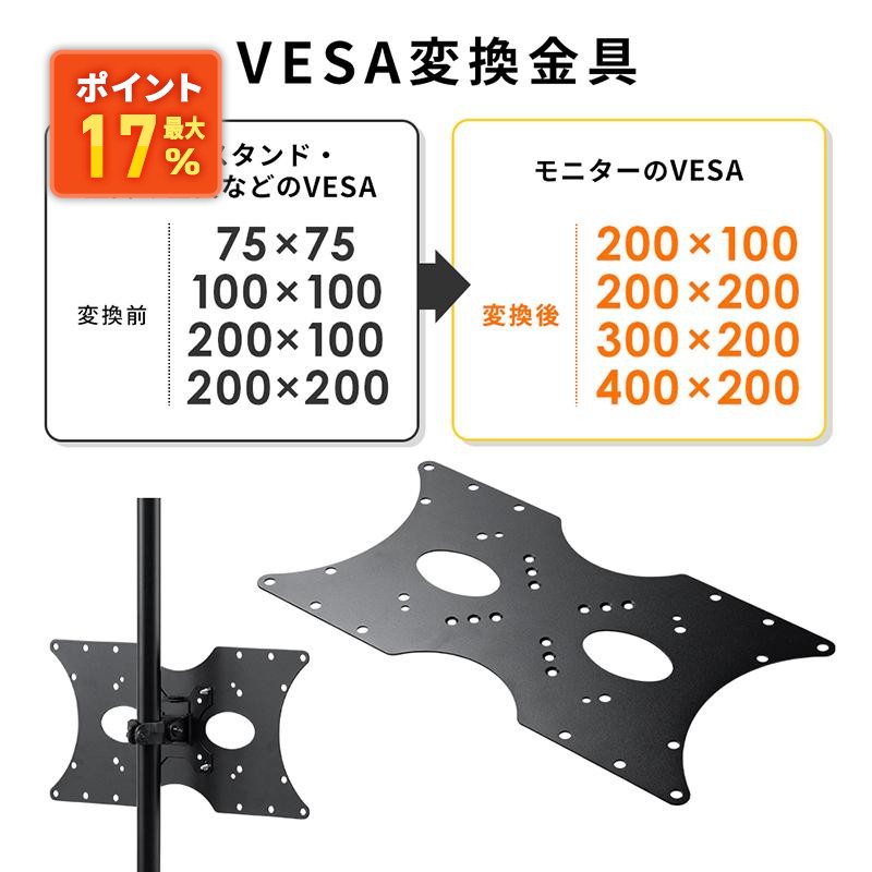 VESA変換プレート vesa変換金具 75×75 100×100 100×200 200×100 200×200 300×200 400×200mm 変換 モニターアーム 壁掛け金具 テレビスタンド EEX-VESATF03